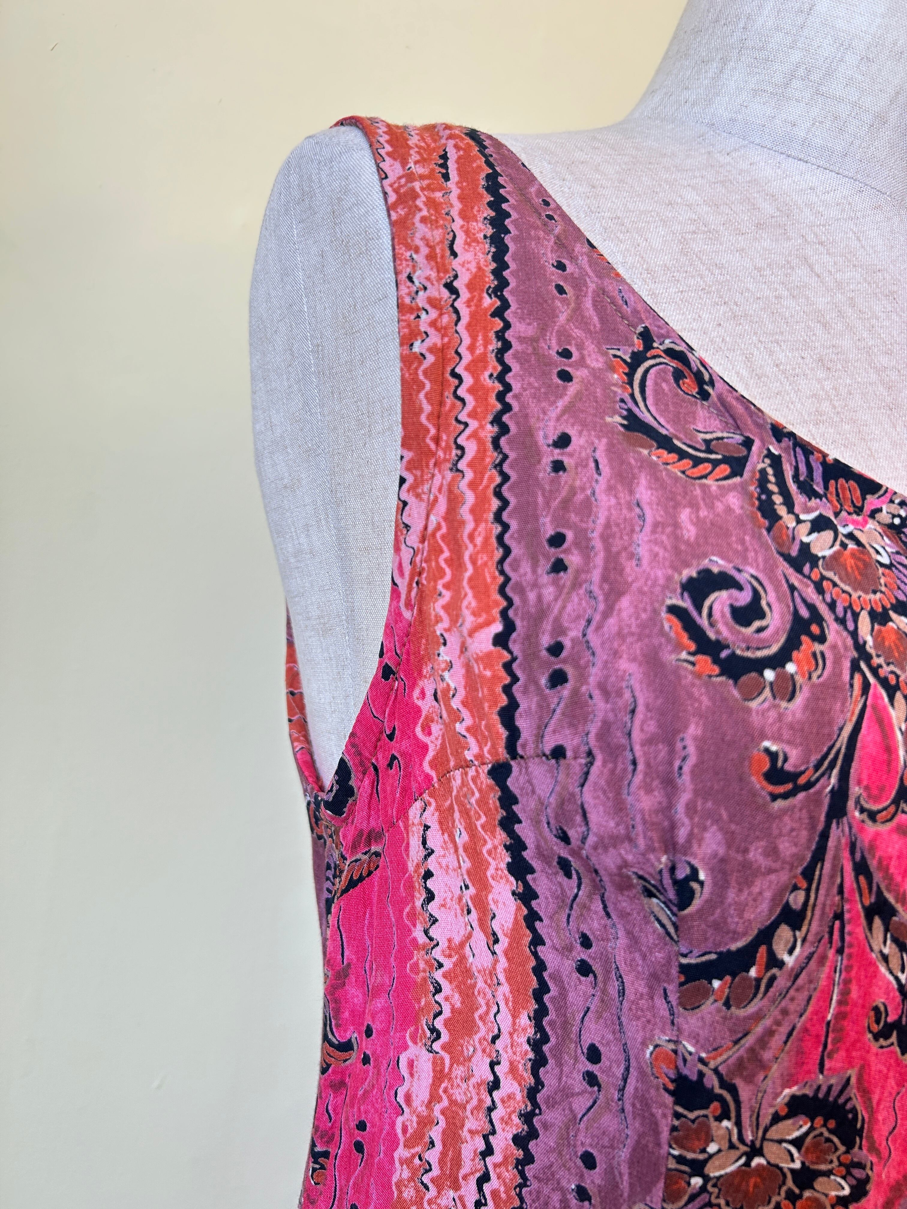 Euro Vintage Sleeveless Long Dress 総柄 ノースリーブ ロング マキシ ワンピース ピンク パープル