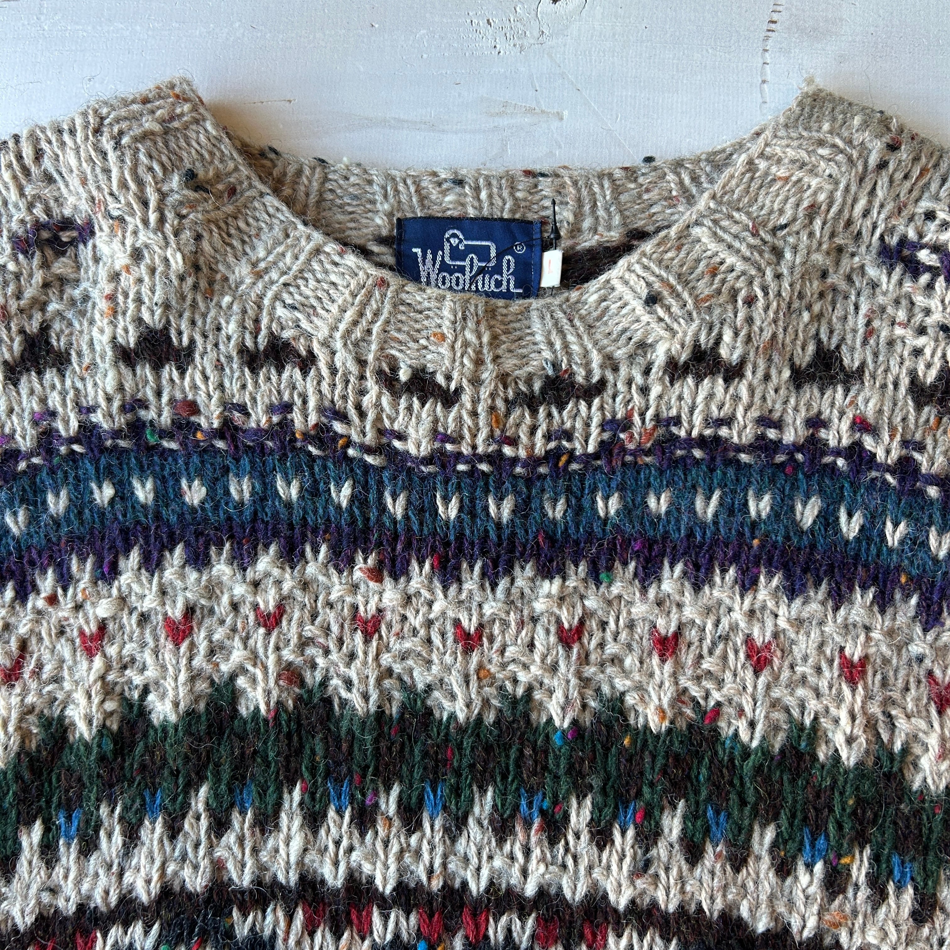 80s-90s Woolrich Wool Nordic Sweater ノルディック ウール セーターMen's L