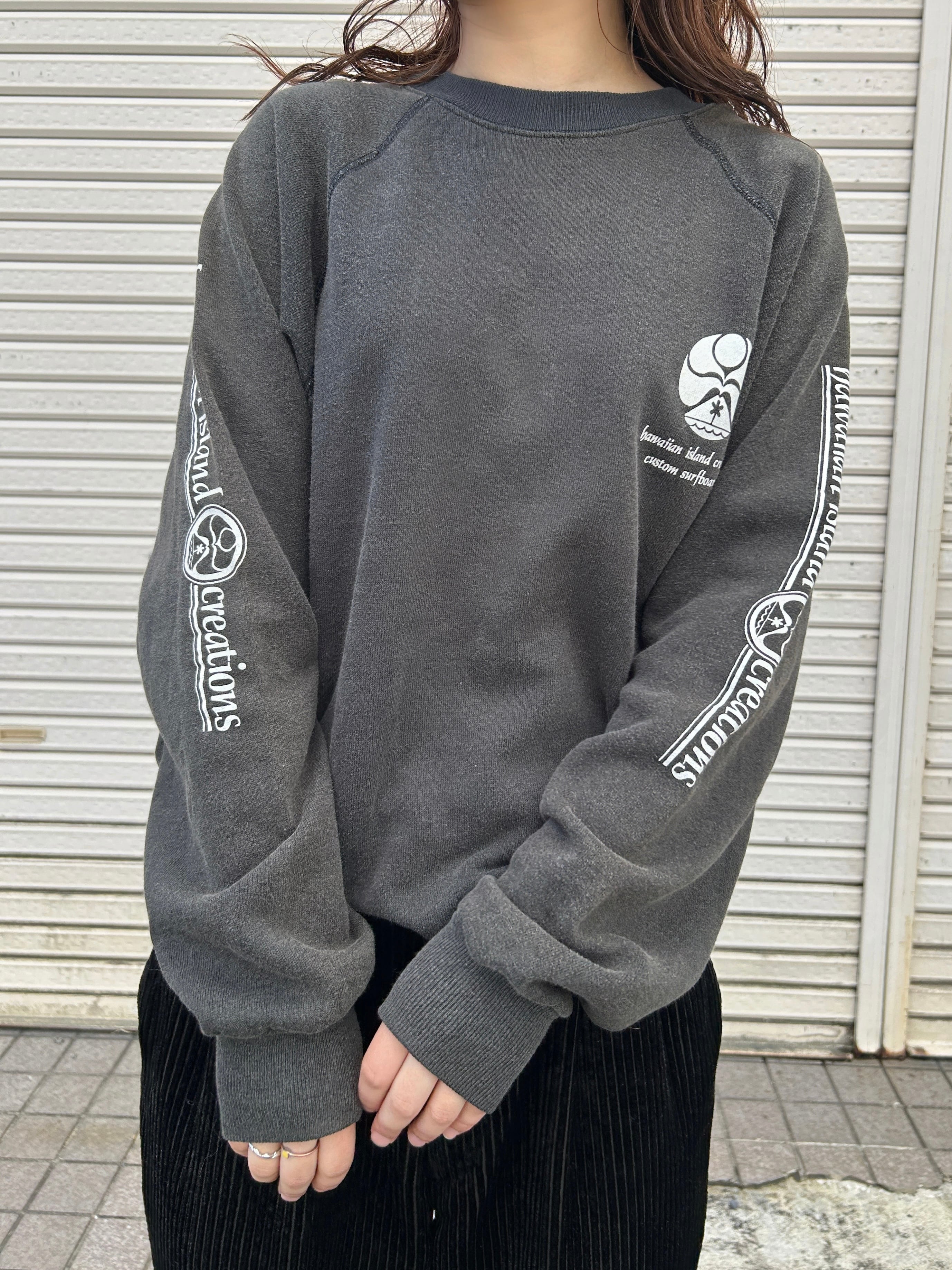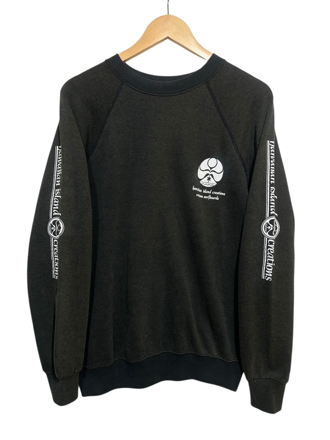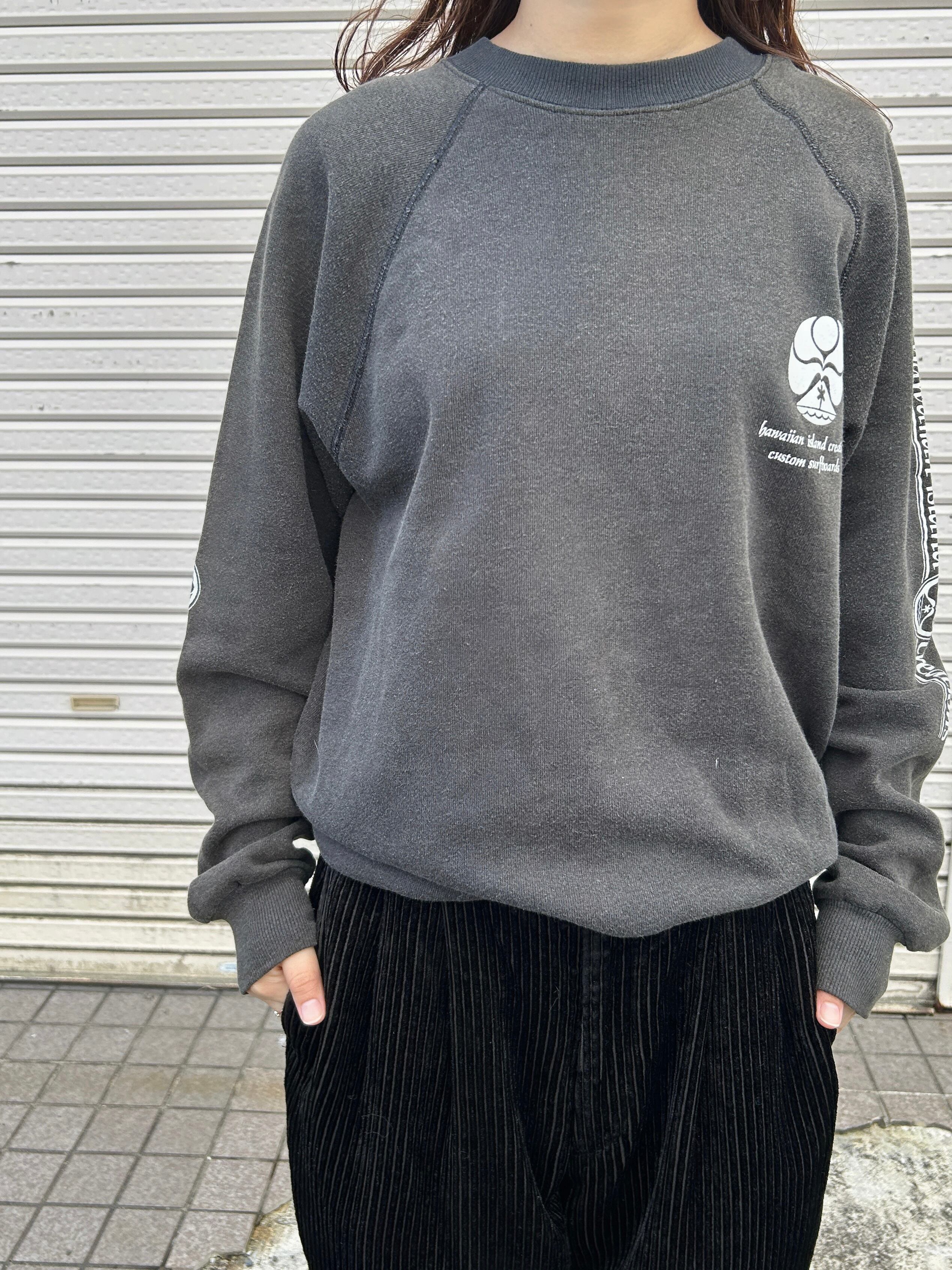 80s vintage Hanes made in USA スウェット プルオーバー トップス M 墨黒 Hawaiian Island Creations Old Surf オールドサーフ