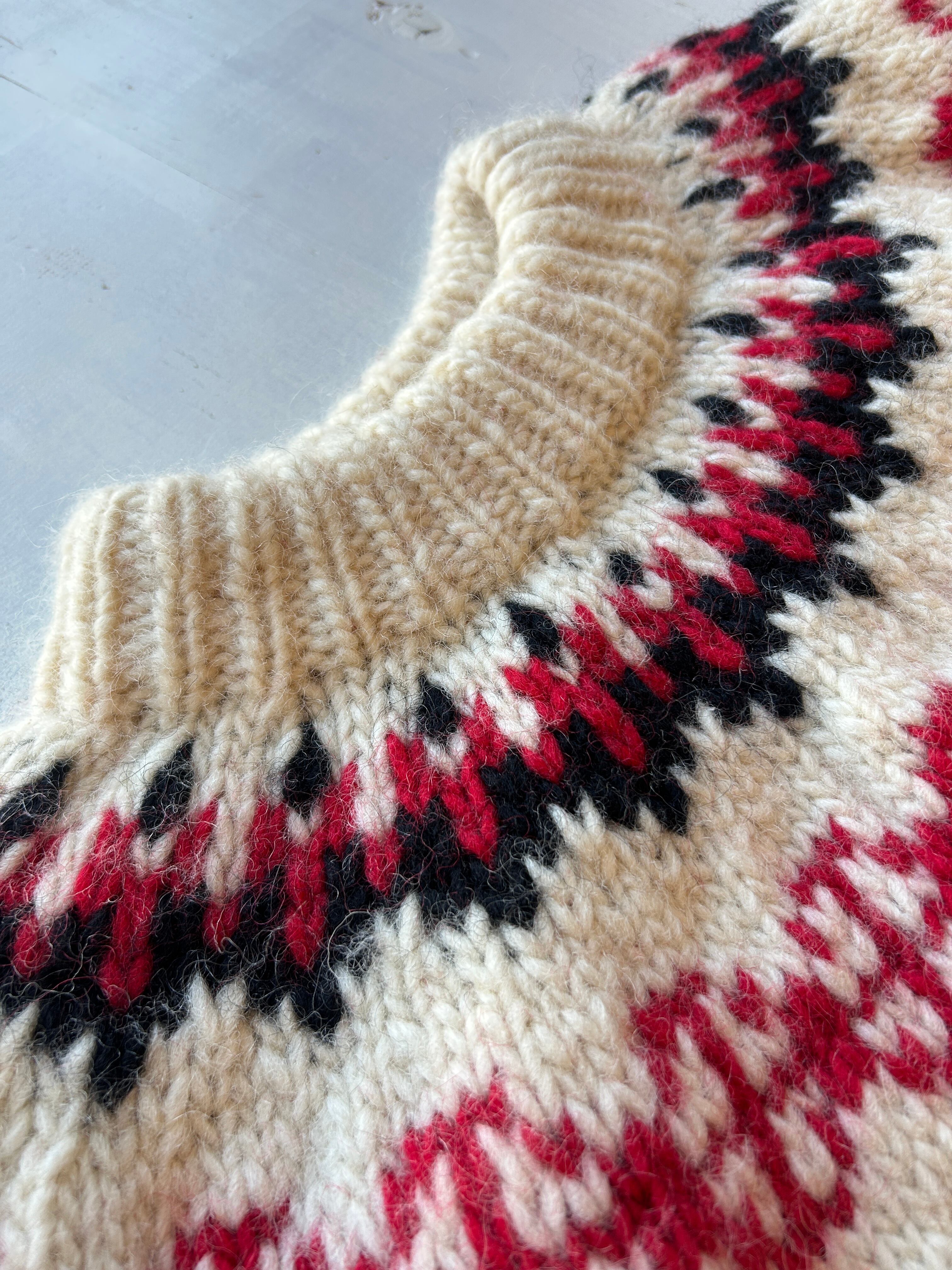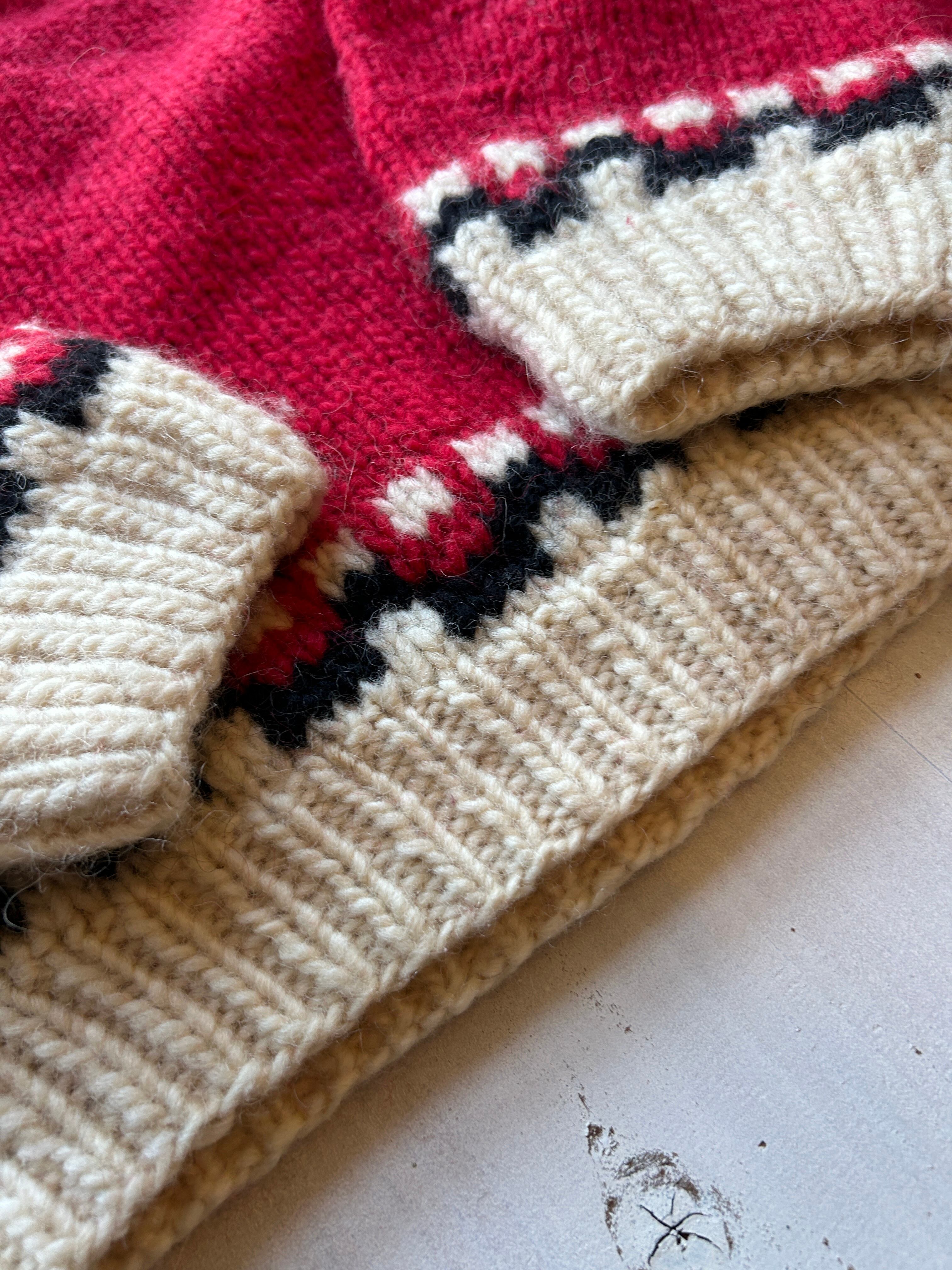Euro Vintage Nordic Wool Sweater Red Color Hand Knit ノルディックセーター ハンドニット Lサイズ相当