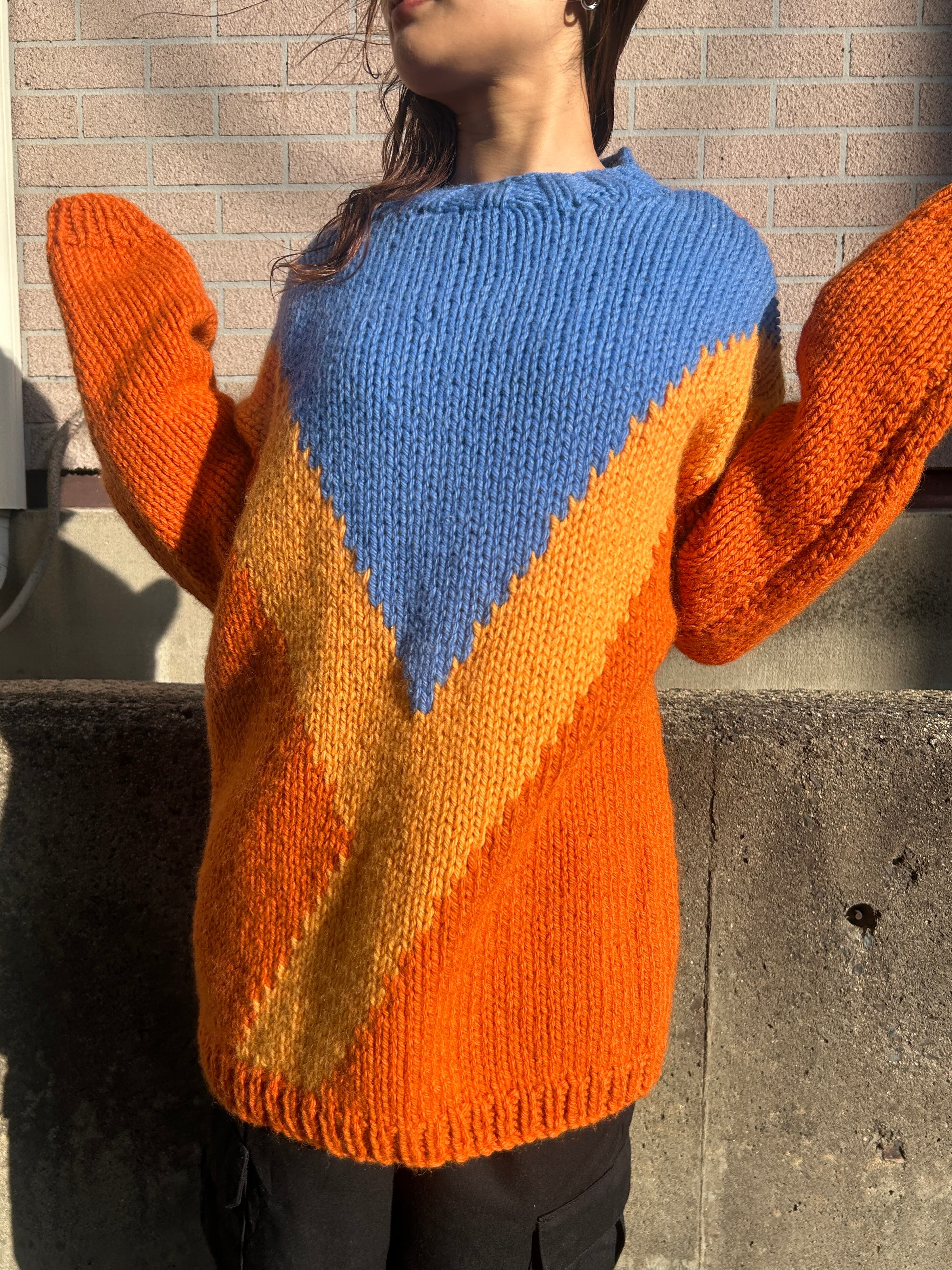 Wool Ecuador Hand Knit マルチカラー デザインニット セーター オレンジ ライトブルー イエロー