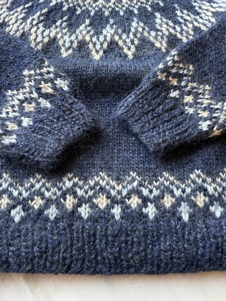 ノルウェーの伝統的な模様が優しい色味で編み込まれたデザインのノルディックセーター。
