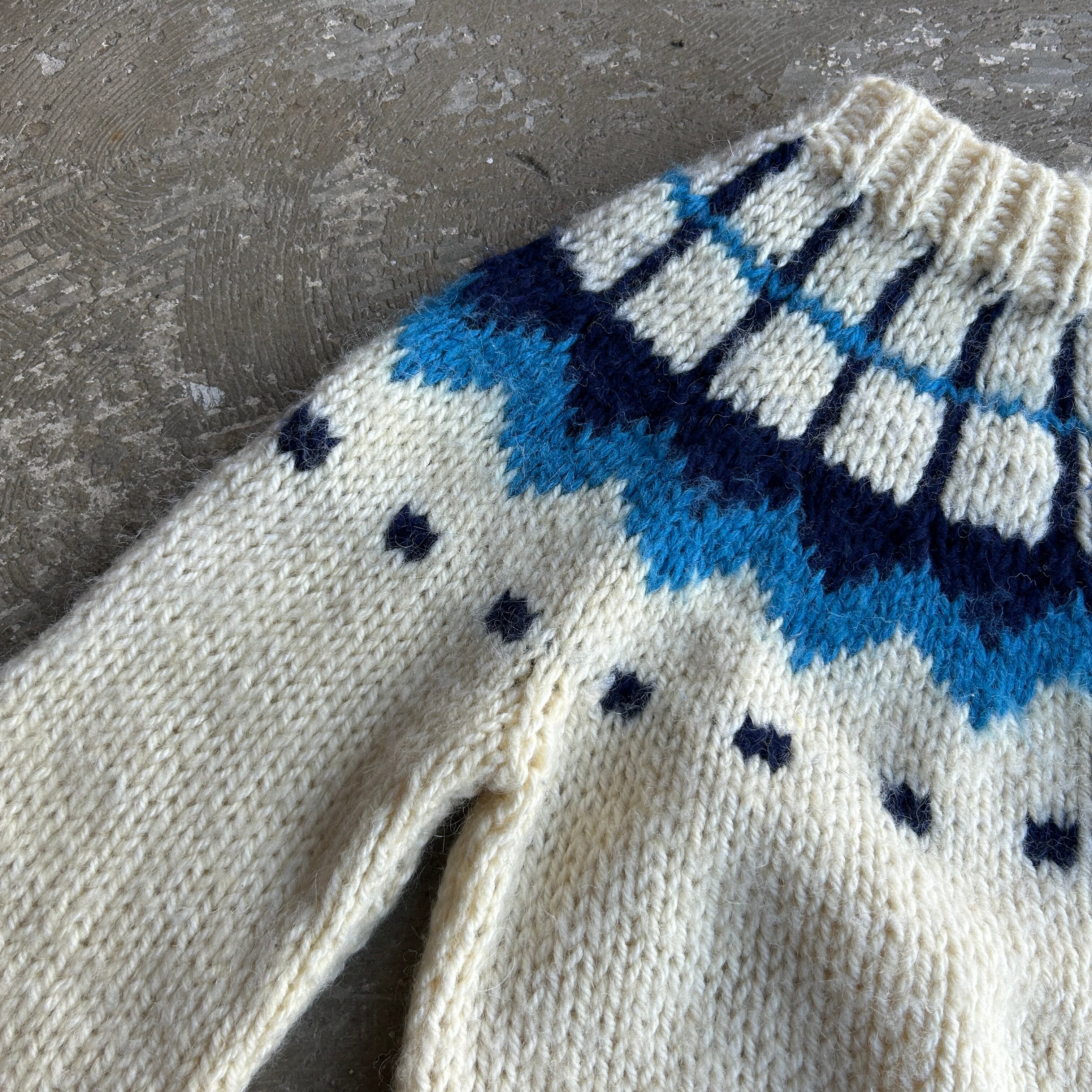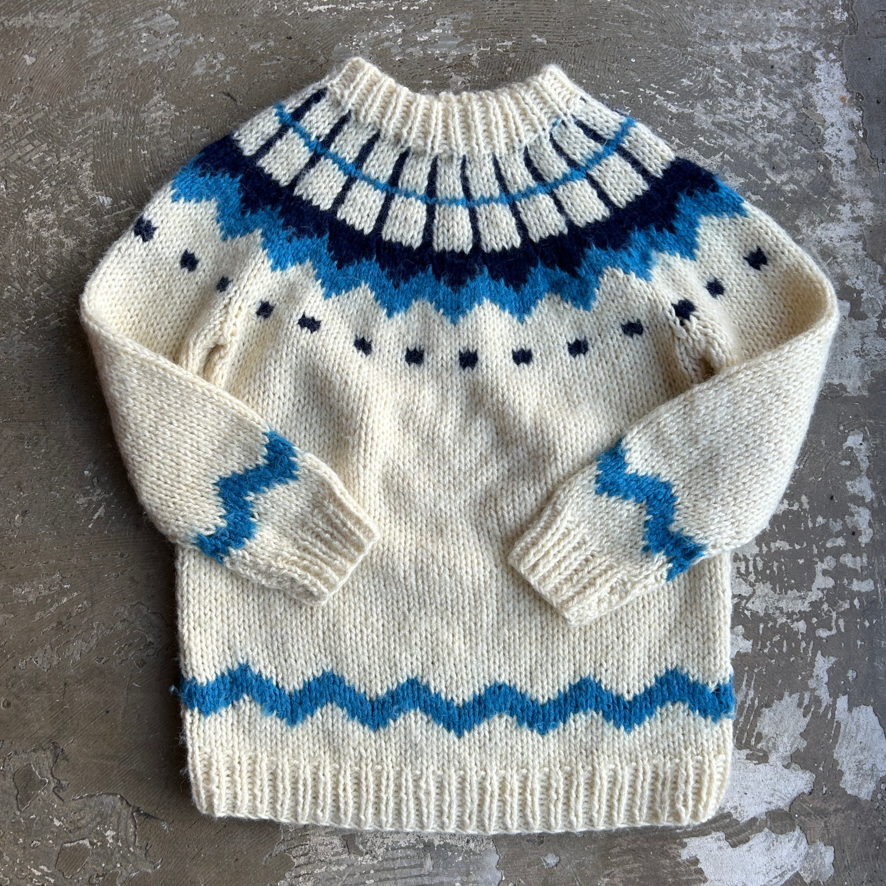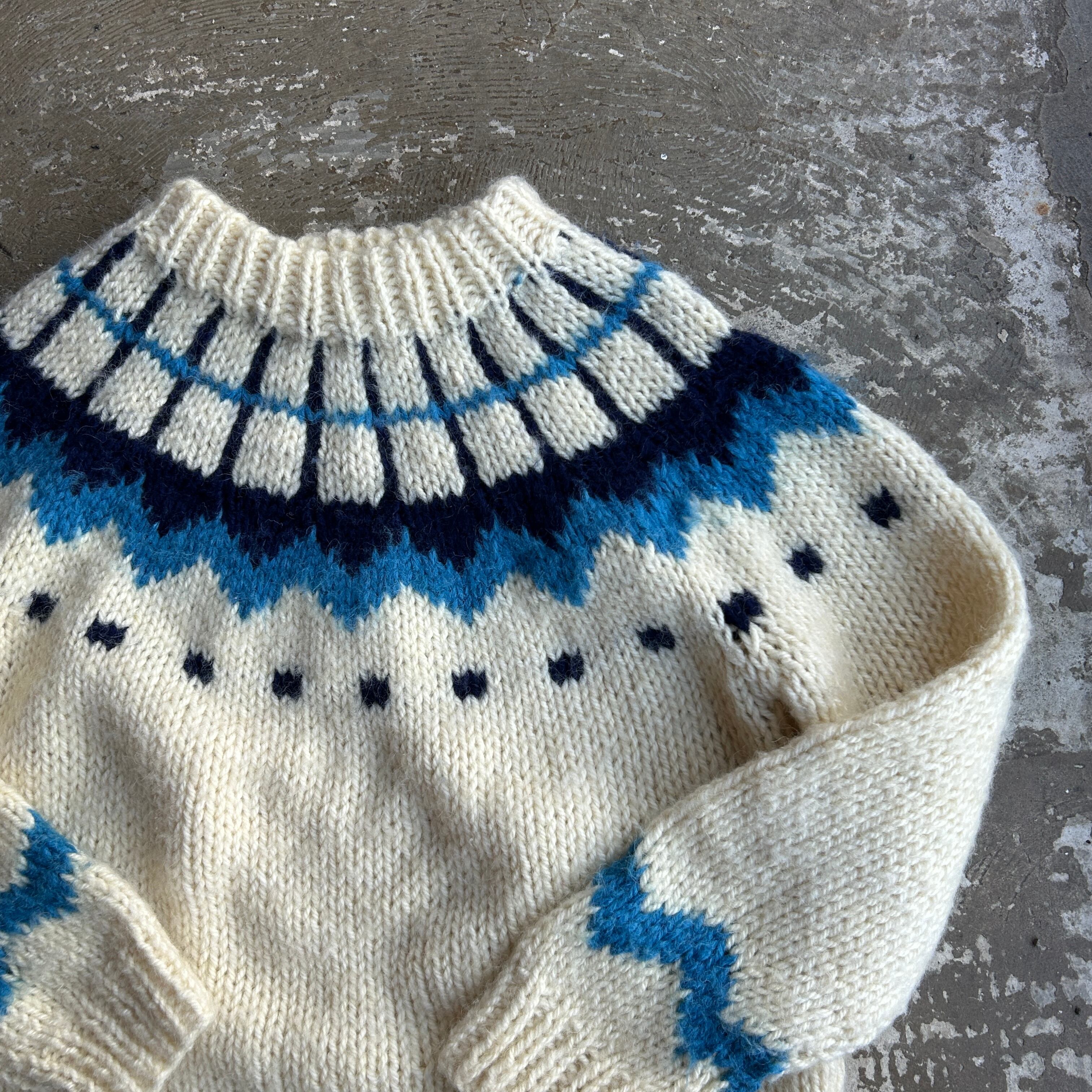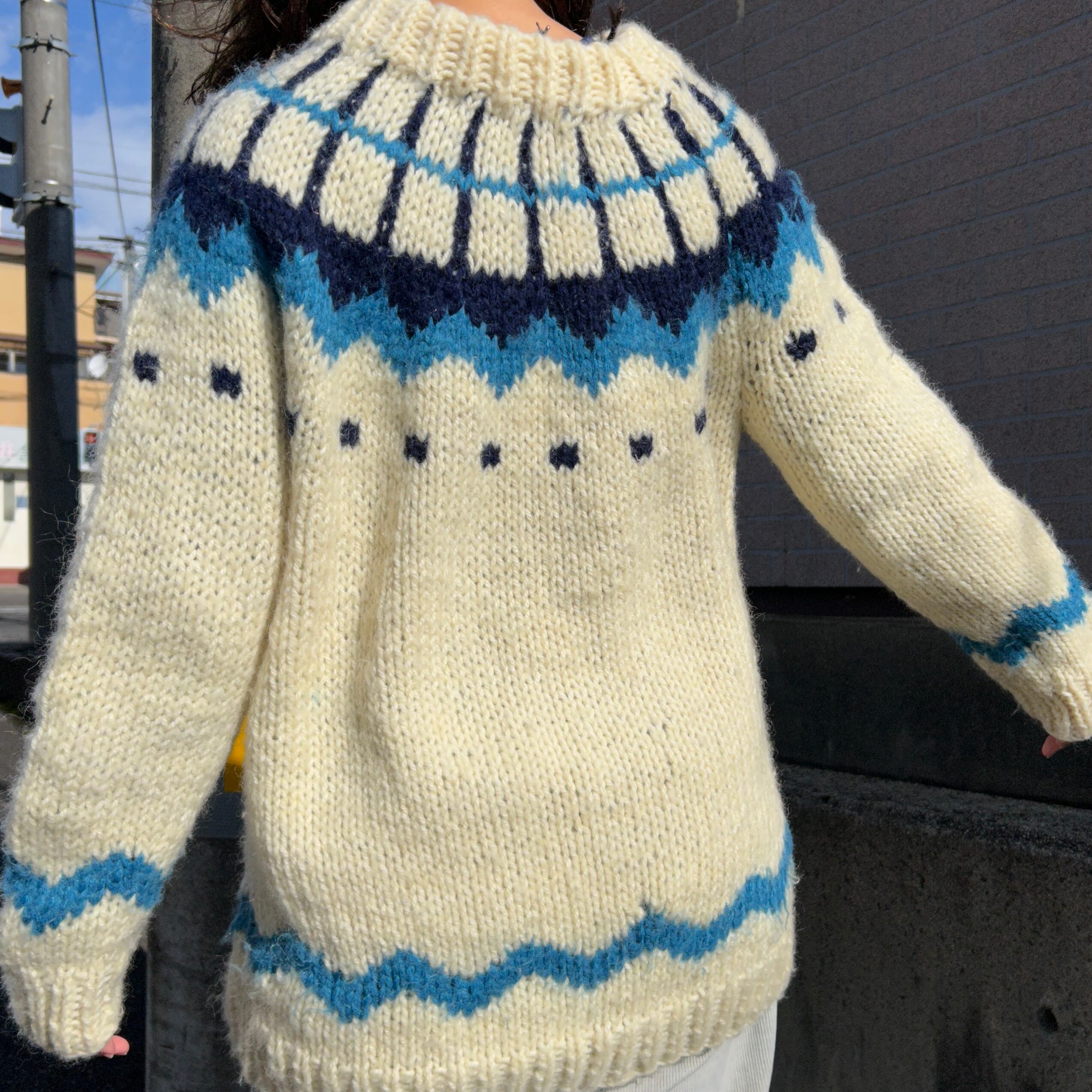 ヨーロッパ古着 ロピーセーター ホワイト × ブルー系 ユーロビンテージ プルオーバーニット セーター